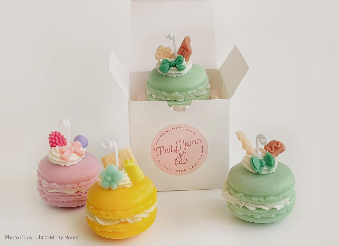 Melty Noms is a handmade (non-edible) dessert candle shop featuring sweets you eat with your eyes only.